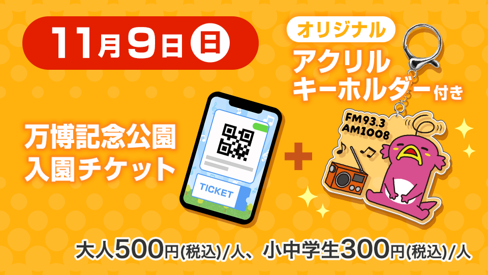 ※当日、万博記念公園中央口近くのグッズ付き入園チケット受付場所にて、アクリルキーホルダーを、チケット1枚に対して1つお渡しします。